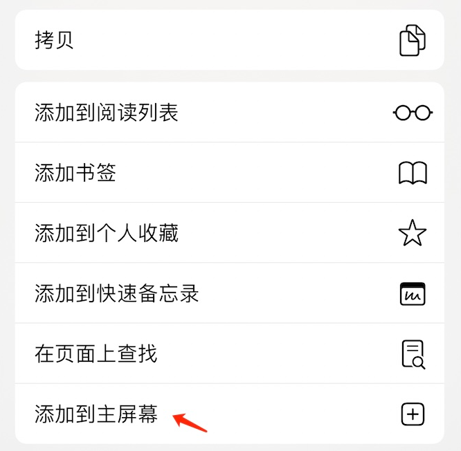 • 3、在弹出的界面上,点击“添加到主屏幕”,如下图